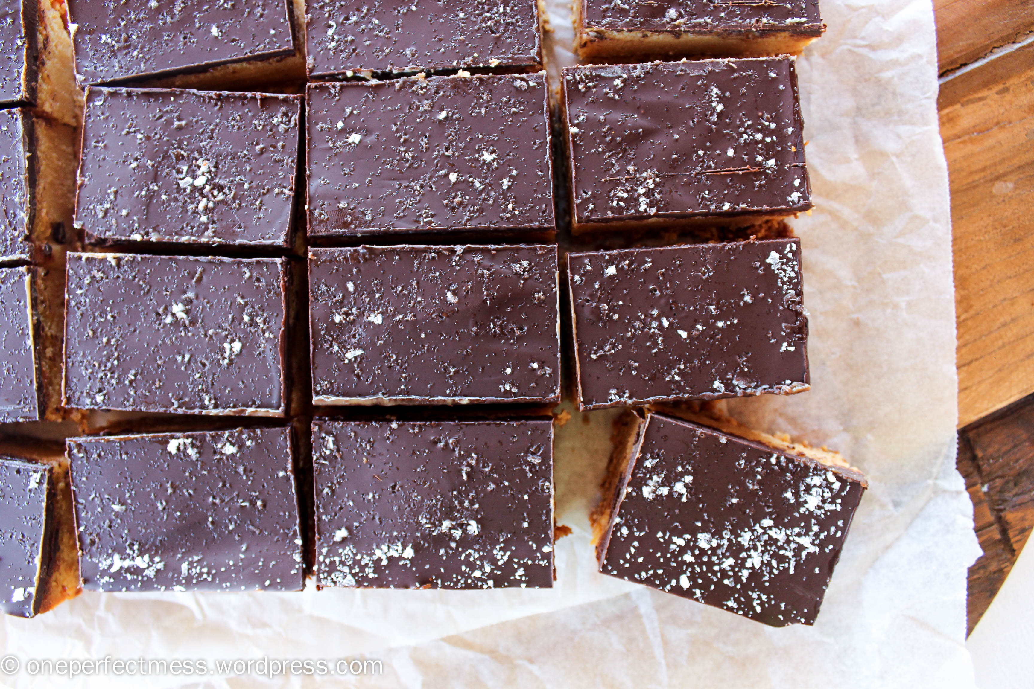- Allow chocolate topping to cool slightly, for about 10-15 minutes, until lukewarm but still wet. This will ensure that the salt flakes do not melt. Sprinkle with extra salt flakes, then refrigerate until set.
