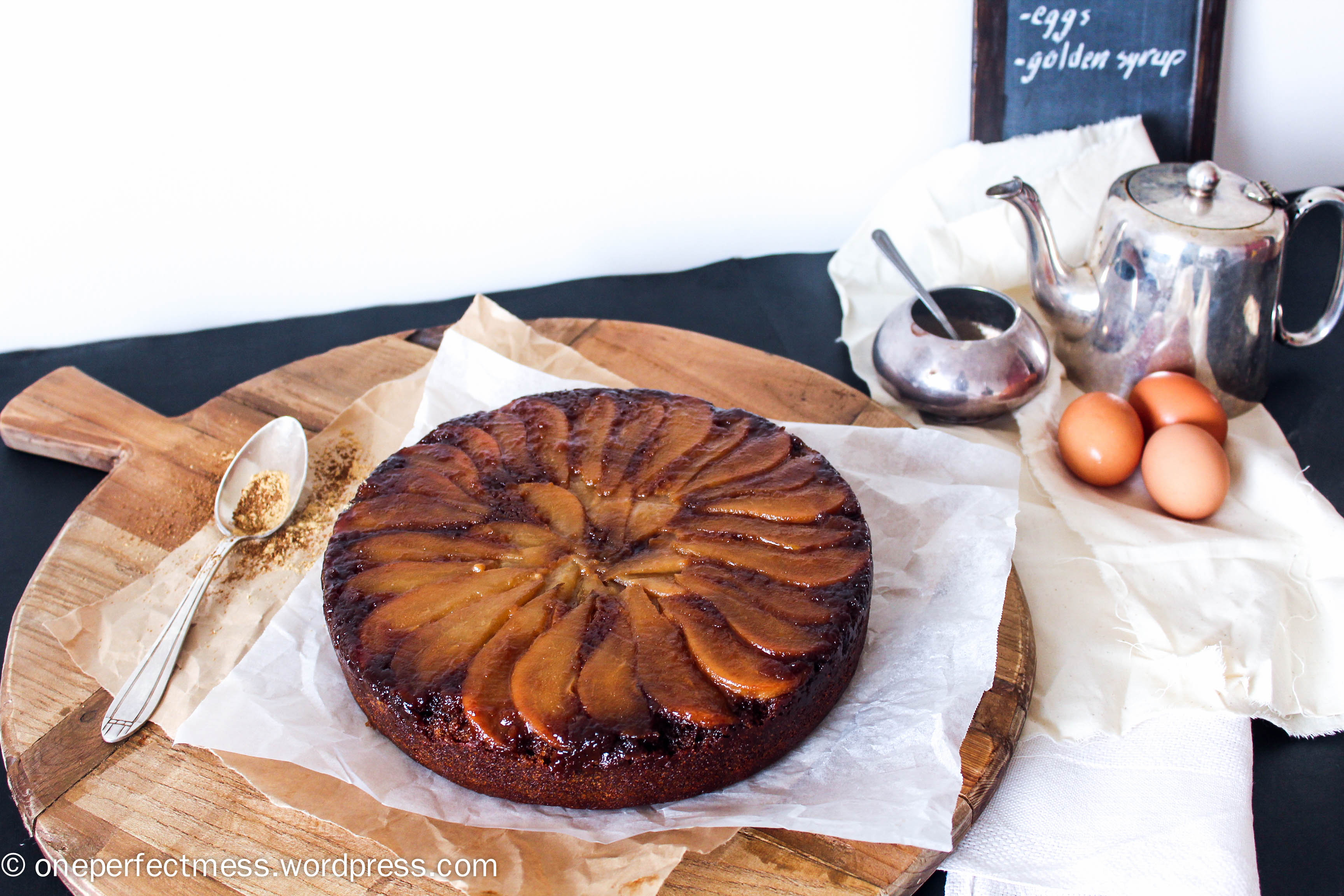 It’s a dark, wintery night and you’re cozied up on the couch, hands wrapped around a steaming mug of tea, listening to the crackling fire and the pitter-patter of gentle rain on the roof, but there’s something missing…until you pull this Caramelised Pear and Ginger Upside Down Cake out of the oven! I firmly believe that one slice of this soft, sweet, sticky cake will solve a significant number of your problems, and will be gladly received by whoever you choose to share it with. This recipe has become a favourite of mine, and I’ve experimented with it over the years to produce this fool-proof version.