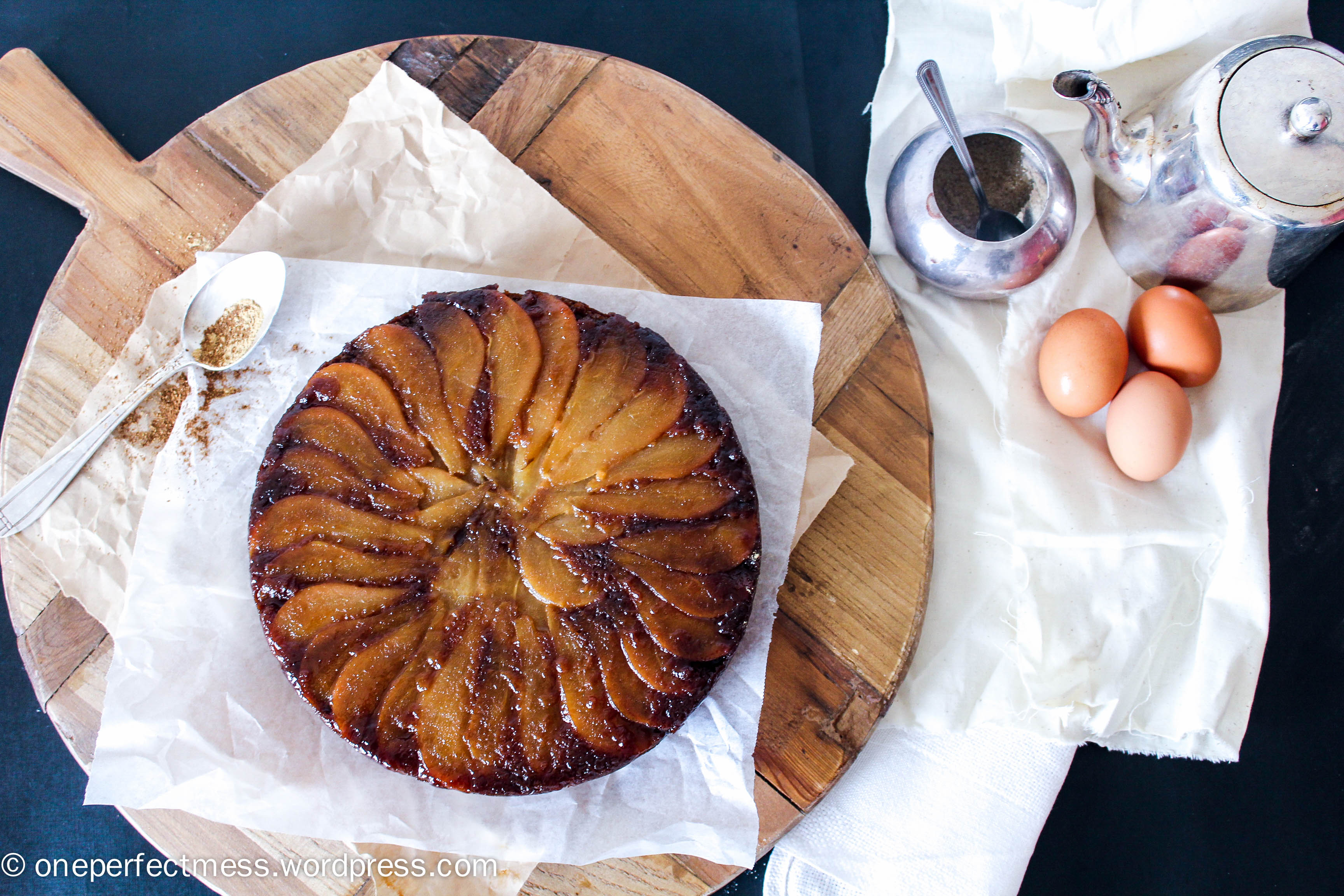 The caramelised pears are perfectly offset by the light, fluffy cake, laced with ginger, cinnamon and mixed spice. The method is very straightforward, but the presentation is wonderfully impressive. Serve the cake warm, on its own or accompanied by a scoop of vanilla ice cream, and let your worries melt away in a mouthful of butter, pear, sugar and spice…you’ll thank me later.
