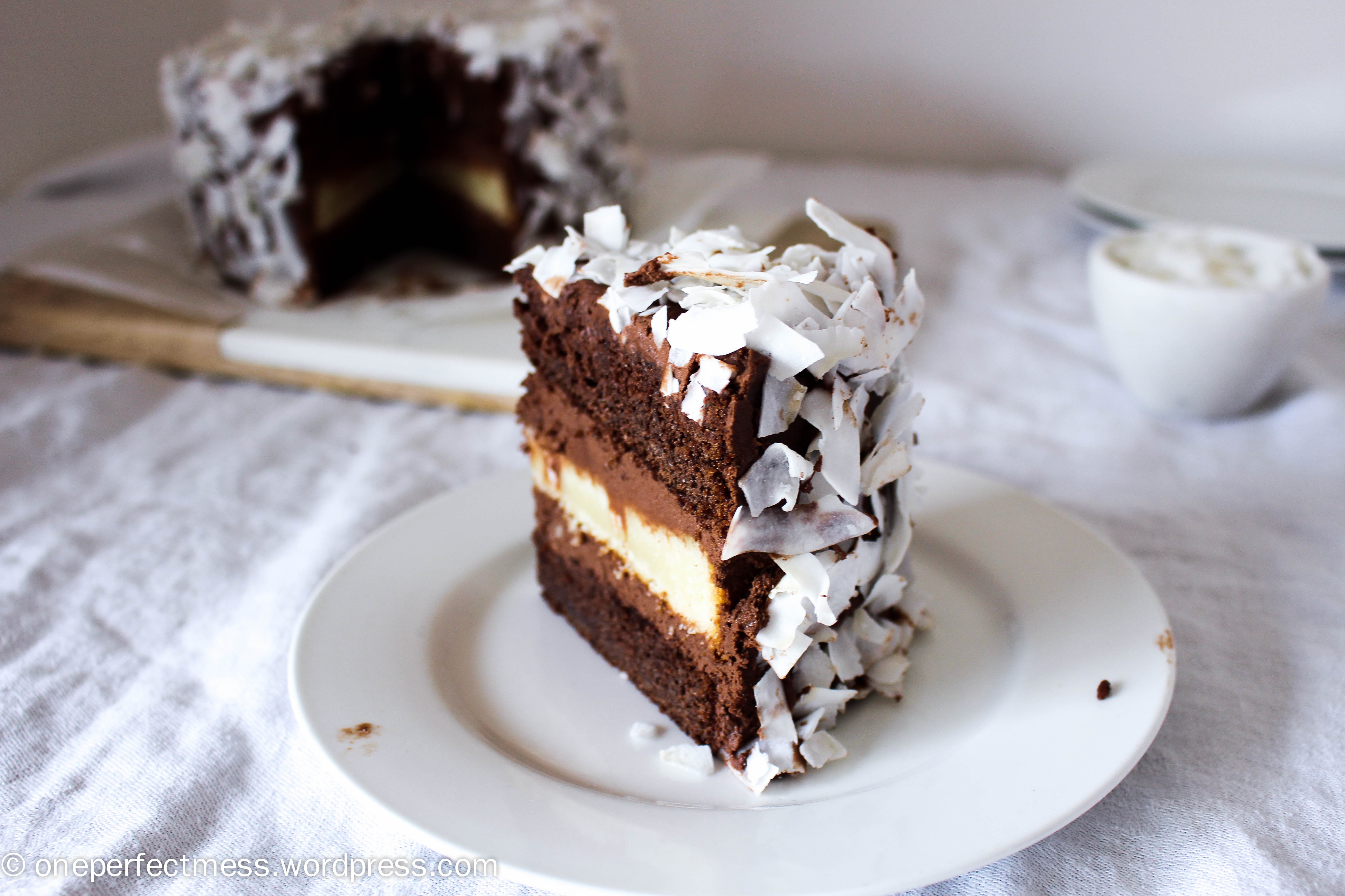 A coco-loco choco-nutty triple layered cake to go crazy for, actually literally seriously. Thjs one takes a little more effort as it involves baking two types of cake (eek!!), but I absolutely promise you that it’s worth it. I’ve even laid out how you can best order each step of the recipe, so that preparation and baking are seamlessly coordinated. As your knife glides through this elegant monster, guests will ooh and aah as you reveal what’s inside… An incredibly soft, moist layer of coconut cake nestled between lashings of velvety chocolate cream cheese frosting, kept safe in the rich embrace of 2 fudgy chocolate cakes. Cover the whole thing in more chocolate cream cheese frosting and crispy coconut flakes, and you’re in foodie heaven. It’s the love child of a classic chocolate cake and a Bounty bar, and it’s all yours if you’re up for a couple of hours of baking bliss!